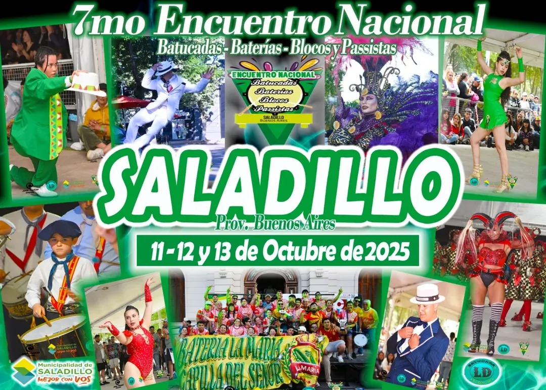 Buenas NoticiasdestacadosSaladillo«7mo Encuentro Nacional»Por Redación Saladillo - octubre 8, 2025Saladillo/BA. 7mo encuentro nacional de batucadas, baterías, blocos y passistas de Salladillo, los dias 11, 12 y 13 de octubre.