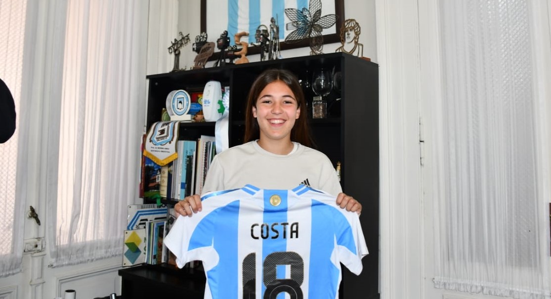 Saladillo/BA. El Intendente Salomón junto con el Subsecretario de Deportes Nicolás Tosca recibió a Antonia Costa que se ha destacado como futbolista al jugar en el Club Atlético River Plate y haber integrado la Selección Argentina que resulto subcampeona en la Copa Conmebol tras caer por penales en Asunción con el equipo de Brasil.
