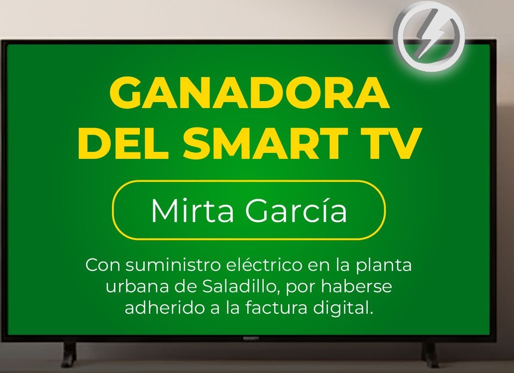 Mirta García, con suministro eléctrico en la planta urbana de Saladillo, fue la ganadora del Smart por haberse adherido a la factura digital.