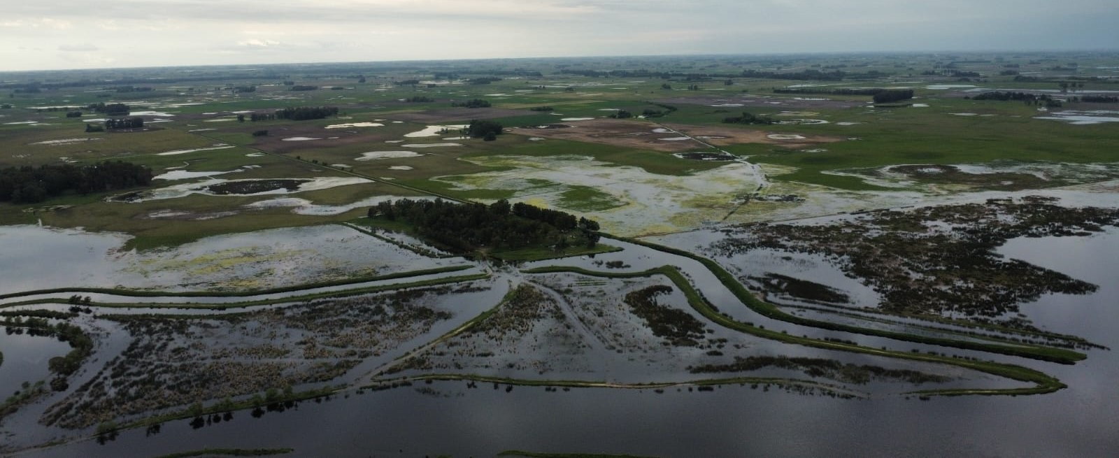 Saladillo/BA. El club de pesca de saladillo nos ha facilitado estas fotos áreas que nos permiten tomar dimensión de la gran masa de agua que está entregando el arroyo a la zona. Sin dudas no es agua de lluvia caída en nuestros campos sino caudales que se reciben de la parte mas alta de la cuenca en su camino natural hacia el Rio Salado.