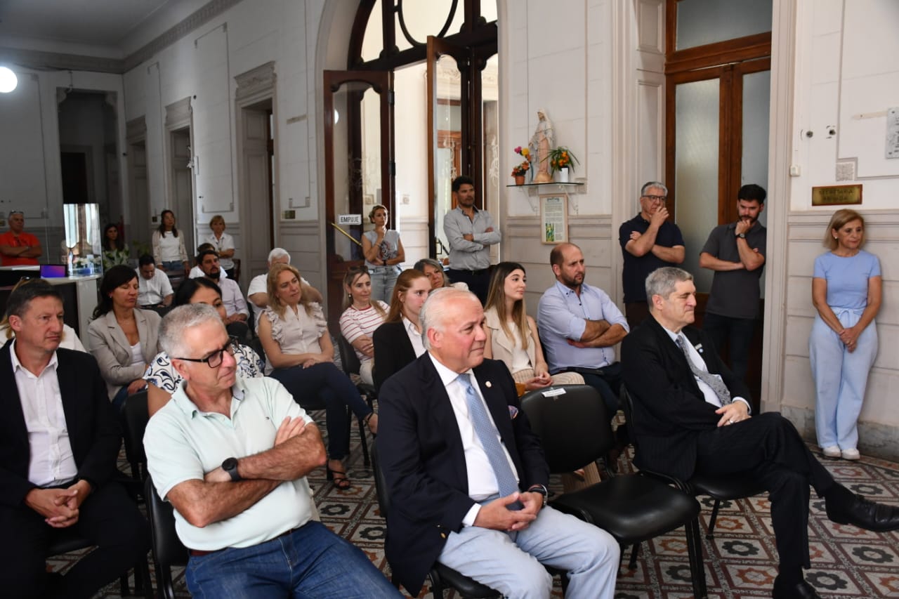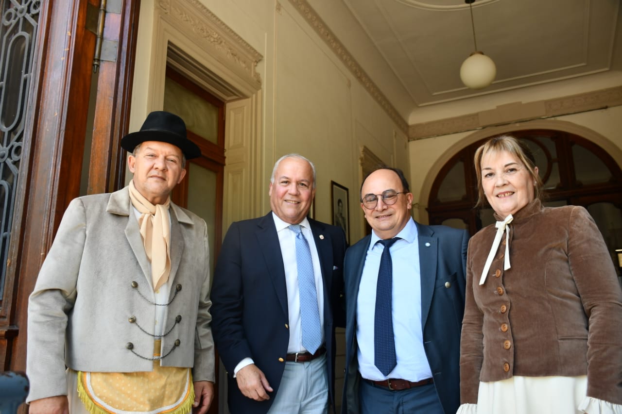 Frente al municipio fue recibido por el Intendente Municipal Ing. José Luis Salomón e integrantes del equipo de gobierno de gestión local para luego brindar la recepción oficial con palabras de bienvenida en el hall del Palacio Municipal.