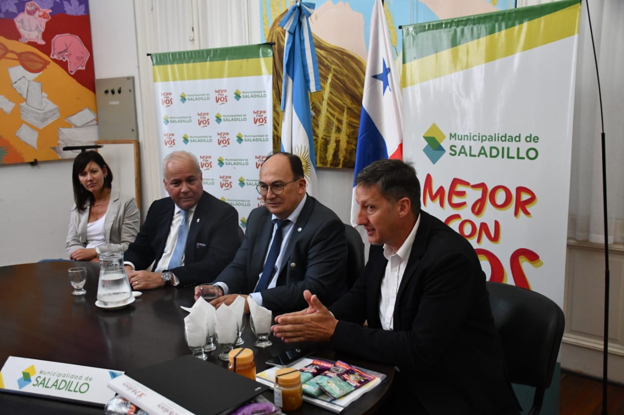 Saladillo/BA. Entre las actividades importantes que tuvieron que ver con la presencia del Embajador de Panamá en nuestro país, Juan Luis Correa Esquivel, estuvo el encuentro desarrollado en el Salón Sesquicentenario Gobernador Dr. Alejandro Armendáriz de la que participaron un nutrido grupo de empresarios y comerciantes saladillenses.