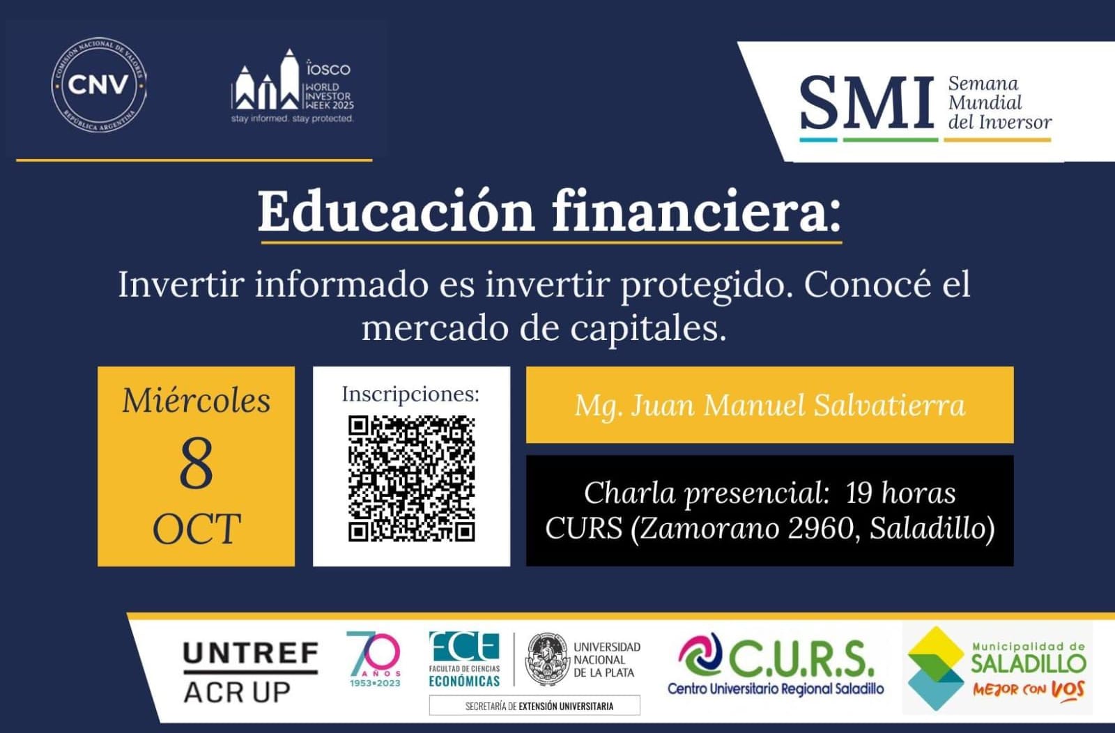 Saladillo/BA. Nos sumamos a la Semana Mundial del Inversor, una iniciativa global impulsada por la OICV-IOSCO y coordinada en Argentina por la CNV (Comisión Nacional de Valores), que busca promover la educación financiera y el conocimiento sobre el Mercado de Capitales como herramienta de ahorro e inversión segura.