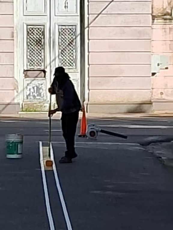 Saladillo/BA. Personal municipal está realizando trabajos de demarcación y pintura en la zona del Pasaje de los Inmigrantes.
