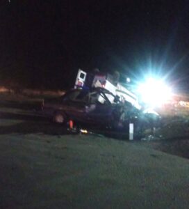 Por causas que se desconocen, chocaron un automóvil Renault 9 que transitaba en sentido Lobos-Roque Pérez, conducido por Martín Alejandro Magariño de 54 años, a quien acompañaban su esposa Gabriela Cuenca, Raquel Santillán y Elsa Gorosito, todos domiciliados en Roque Pérez; y una camioneta Fiat Express que circulaba en sentido Laguna de Lobos-Lobos con 6 personas a bordo, el conductor Leonel Eugenio Almaraz, de 24 años, su esposa Abigail Estrada, de 29 años, sus dos hijos menores, Santino Almaraz de 6 años y Esperanza Almaraz de 2 años, Ariana Ferreyra de 17 años, y Cataleya Díaz de 2 años, todos domiciliados en nuestra ciudad.
