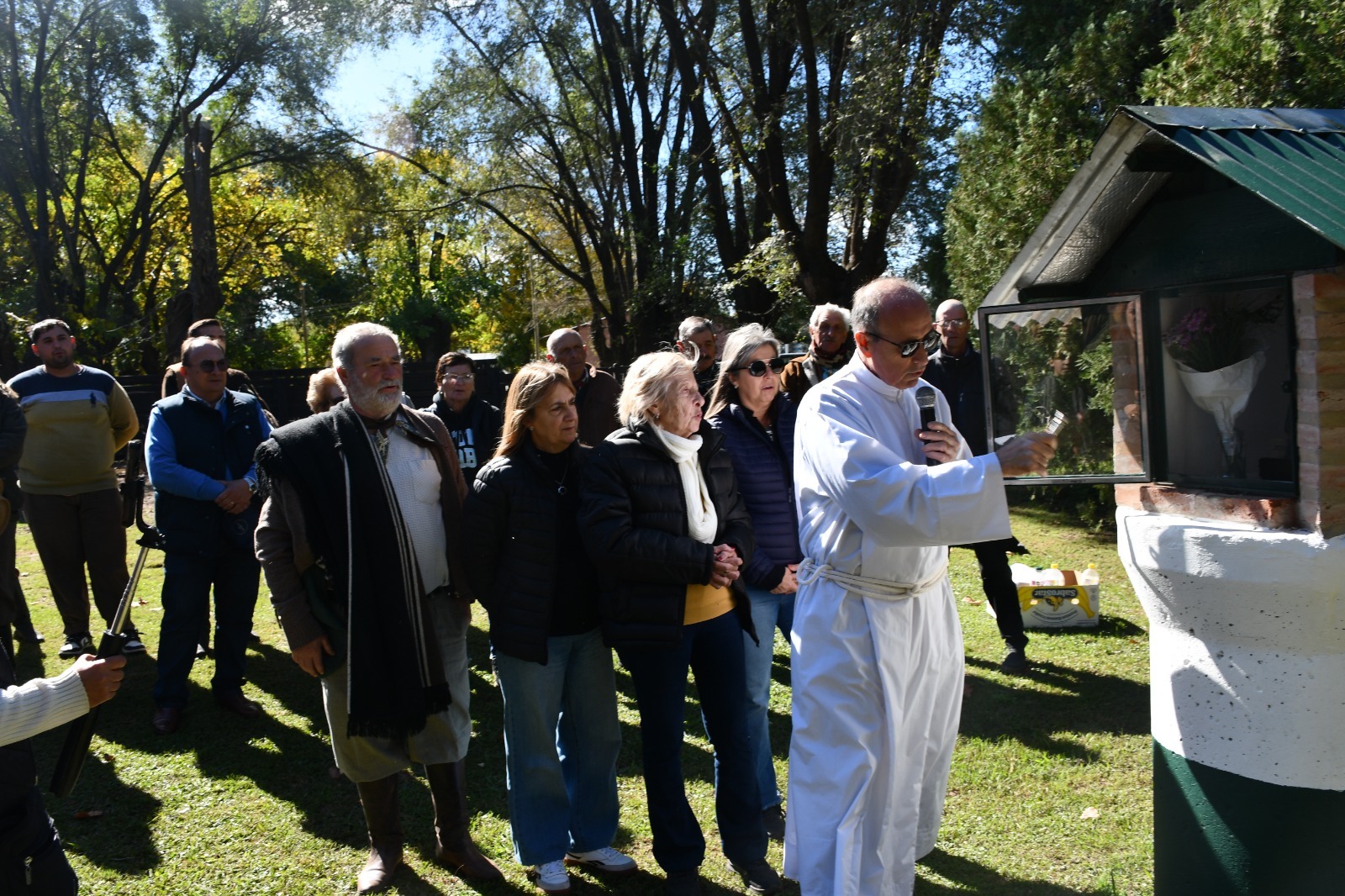 Saladillo/BA. En cumplimiento del legado de Jorge Silveyra, familiares, gauchos peregrinos, directivos de la Sociedad Rural y autoridades municipales participaron de la entronización de una imagen de la Virgen de Luján en el predio de la entidad.