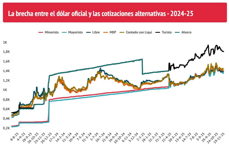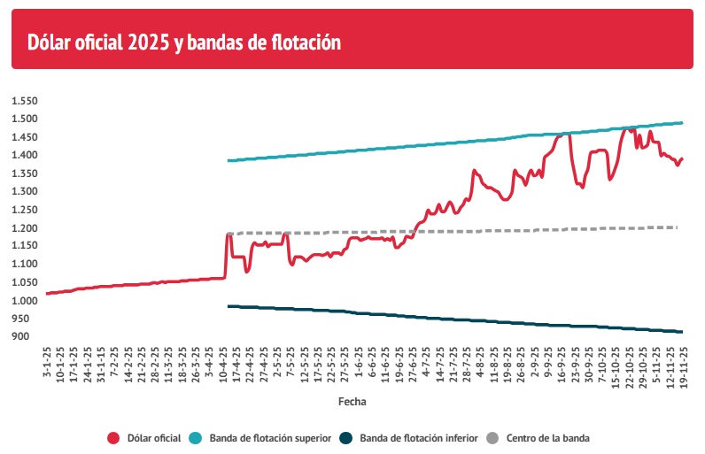 “Hacia el tramo final se observó demanda más activa, que impulsó una recuperación hasta máximos intradiarios de $1.409, para finalmente cerrar en $1.406,50. El volumen tuvo un salto significativo, alcanzando USD 574 millones, uno de los niveles más altos de las últimas ruedas”, completó Marino.