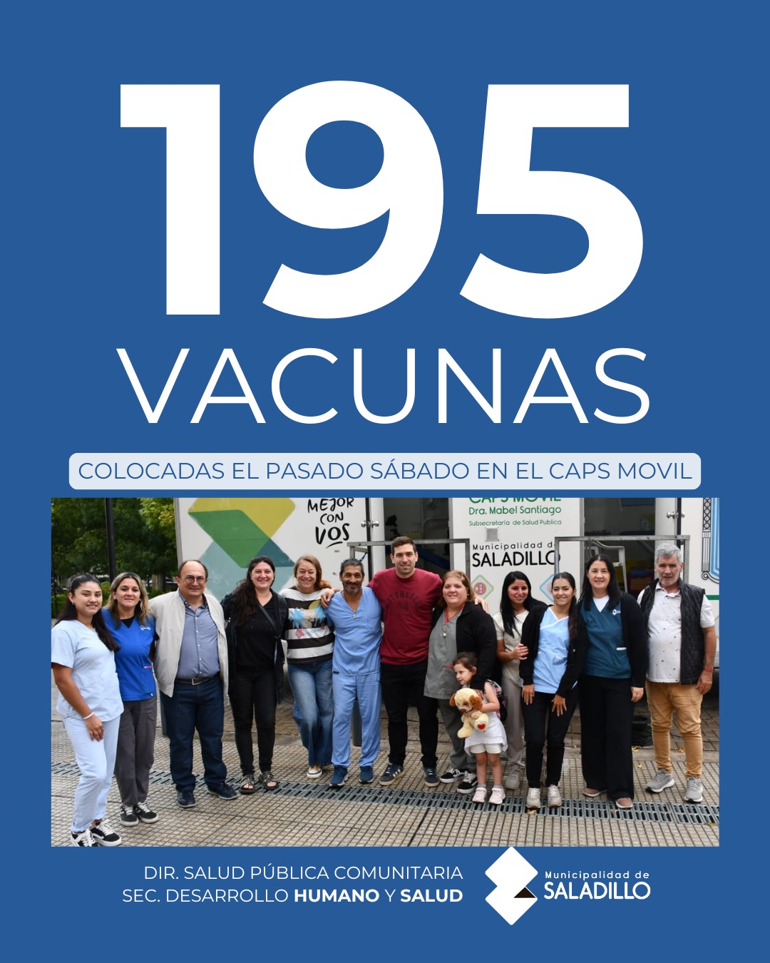 Saladillo/BA. En el primer día de la campaña de vacunación, realizado el pasado sábado en el CAPS Móvil ubicado en la Plaza Principal, se registraron 195 dosis aplicadas.