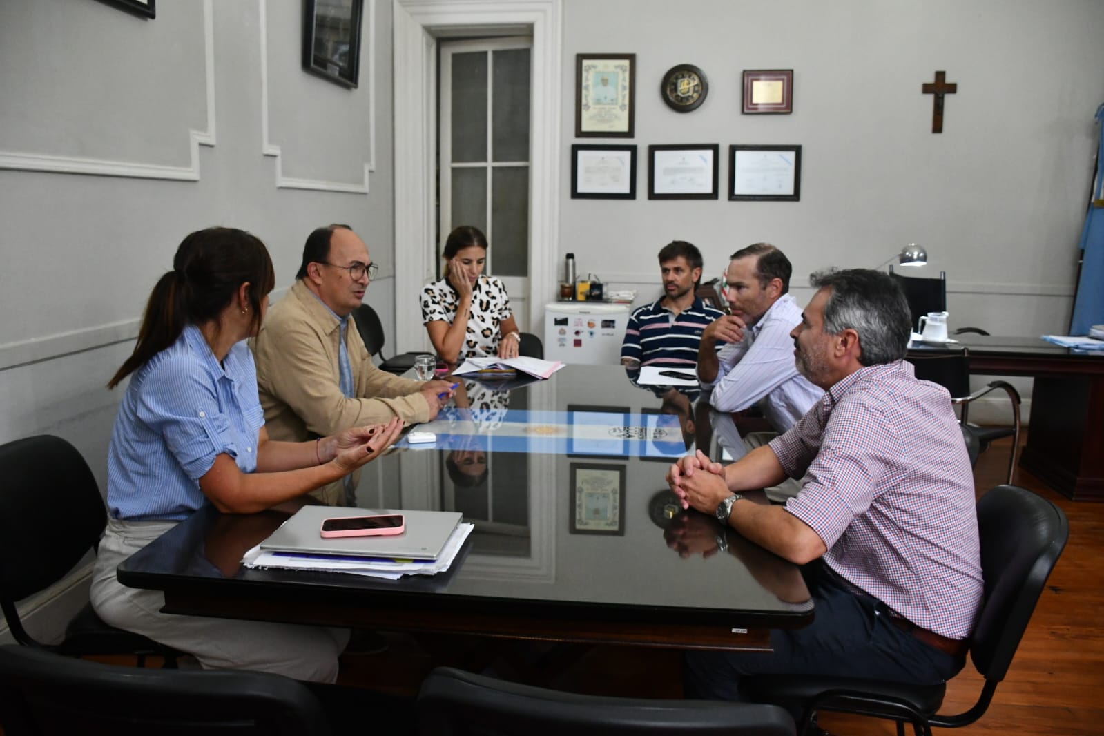 El Intendente, acompañado de la Secretaria de Desarrollo Local, Victoria Irañeta y la Subsec. de Legal y Técnica, Yamila Artigas recibieron para la firma del convenio a Gustavo Leiva Coordinador Temático de Administración del Centro Regional Bs.As. Norte, el Veterinario Juan Ignacio Páez encargado de SENASA Saladillo y Eduardo Antonelli.