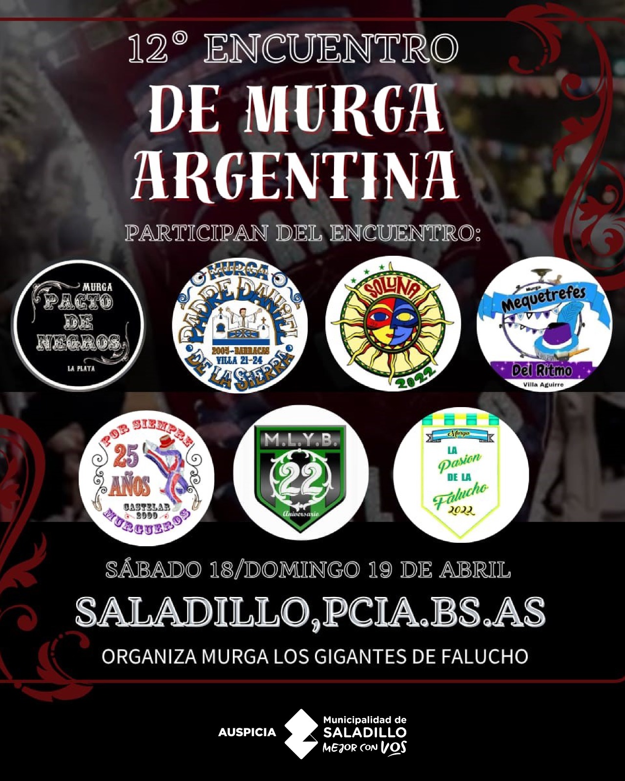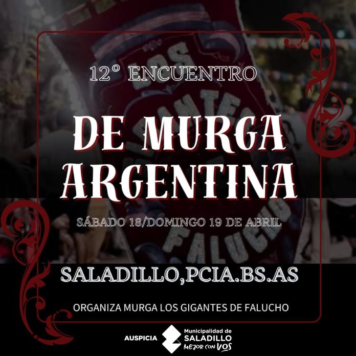 Saladillo/BA. Saladillo será sede del 12° Encuentro de Murga Argentina, que se llevará a cabo el sábado 18 y domingo 19 de abril, con la participación de agrupaciones provenientes de diferentes puntos de la provincia.