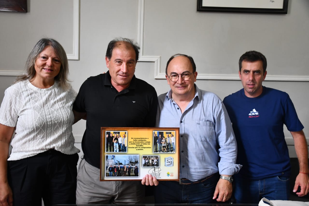 Saladillo/BA. El Intendente Salomón junto con la Secretaria de Gobierno y el Subsecretario de Deportes Nicolás Tosca hizo entrega de un reconocimiento a Julio Lombardo por su trayectoria y logros institucionales durante estos 12 años en la Liga de Fútbol de Saladillo.