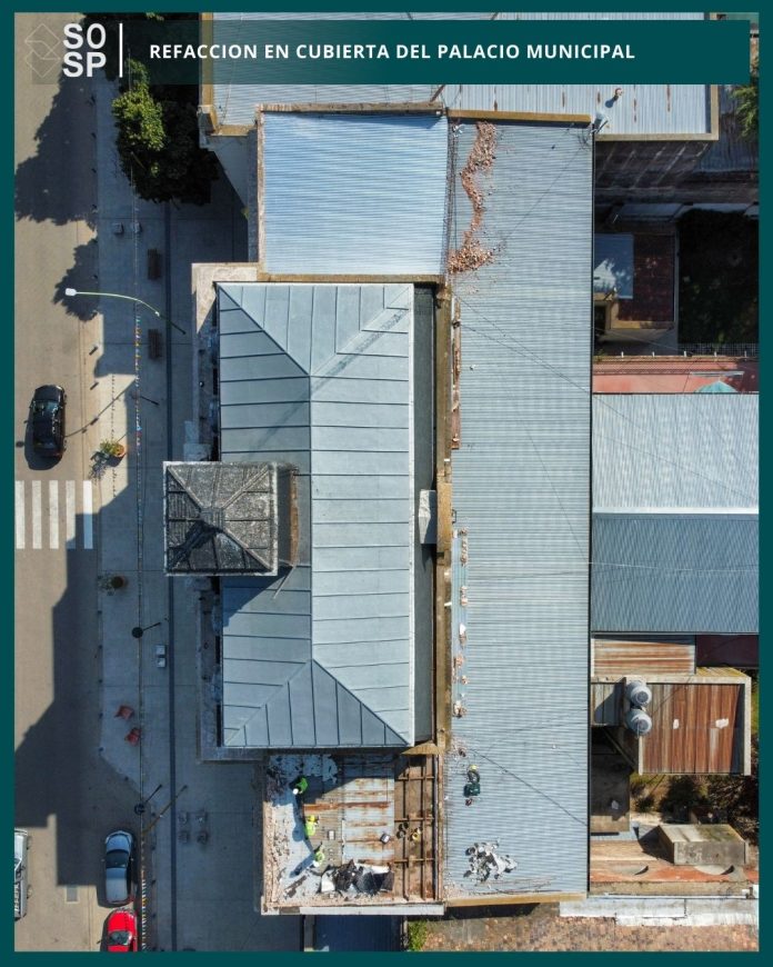 Saladillo/BA. Por estos días iniciaron los trabajos de refacción de cubiertas en el Palacio Municipal. La Inspección recorrió los trabajos y constató avances significativos: el ala izquierda ya cuenta con su nueva cubierta, mientras continúan las tareas en el sector derecho.