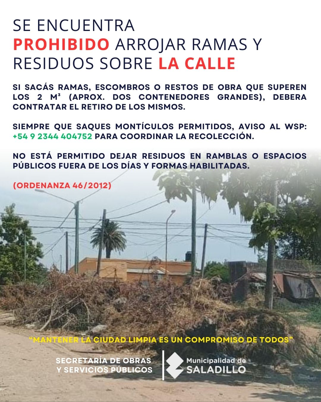 Siempre que saques montículos permitidos, aviso AL WSP: +54 9 2344 404752 para coordinar la recolección.